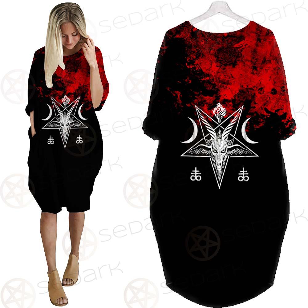 Satanic 666 Black And Red SED-0583 Batwing Pocket Dress