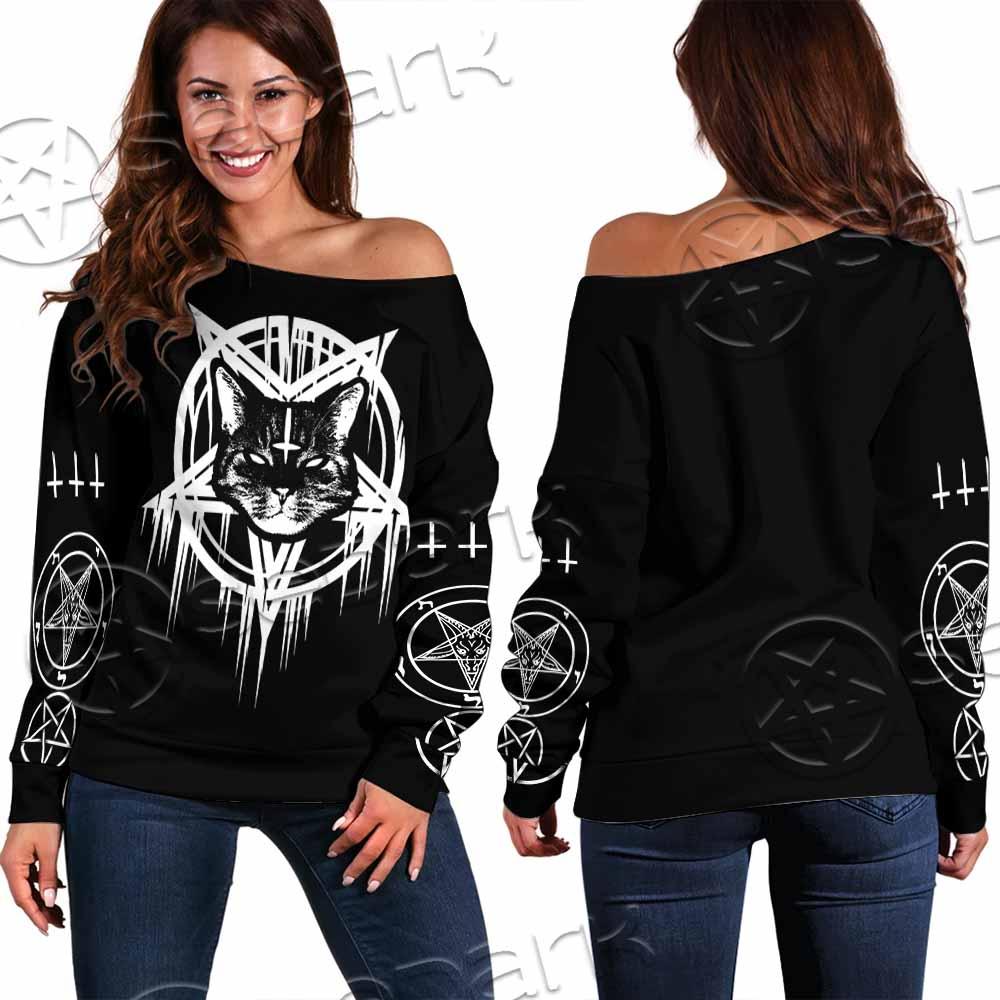 Sigil Of Baphomet Cat SED-0820 Off Shoulder Sweaters