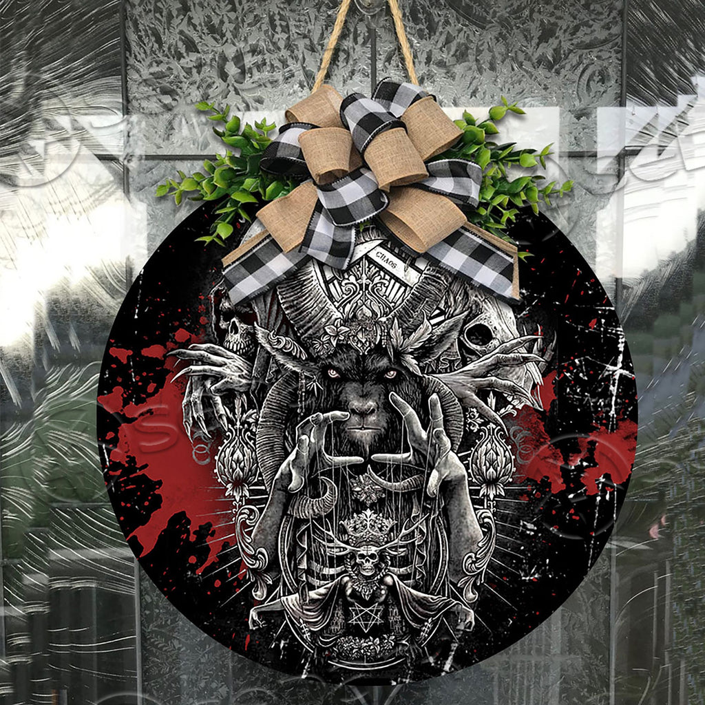 Satanic 666 Chaos Eternity Round Wooden Sign