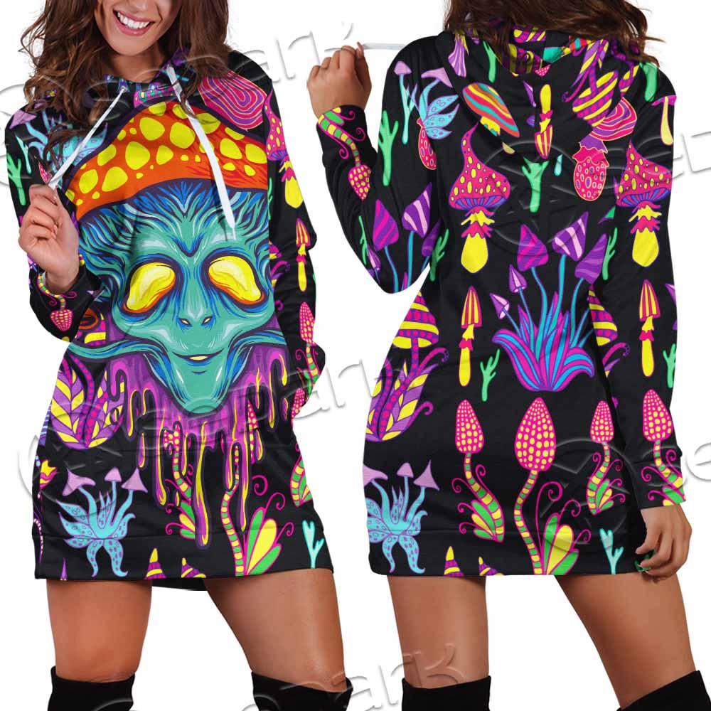 Alien Magic Mushrooms Psychedelic SED-0872 Hoodie Dress