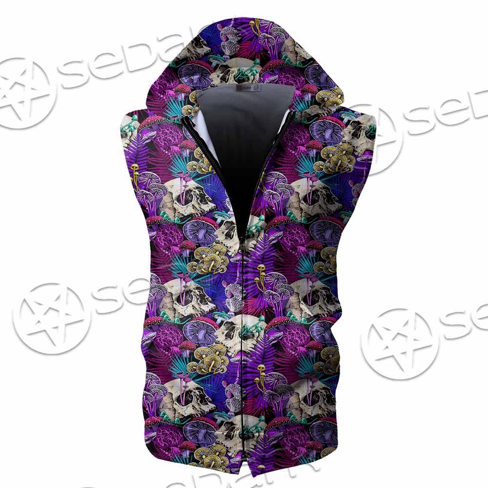 Psychedelic Mushrooms And Skulls SED-0881 Zip Sleeveless Hoodie