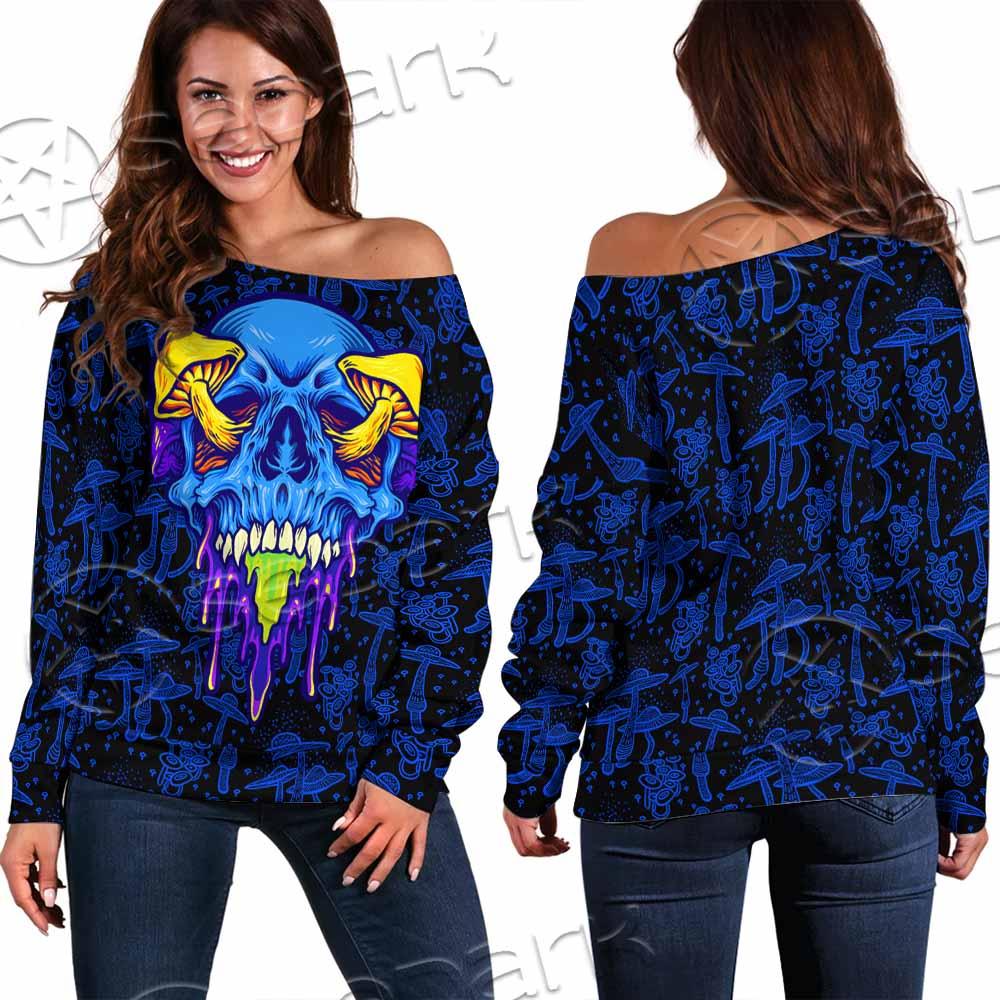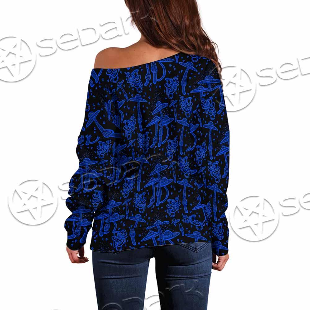 Psychedelic Blue Glowing Mushrooms SED-0882 Off Shoulder Sweaters