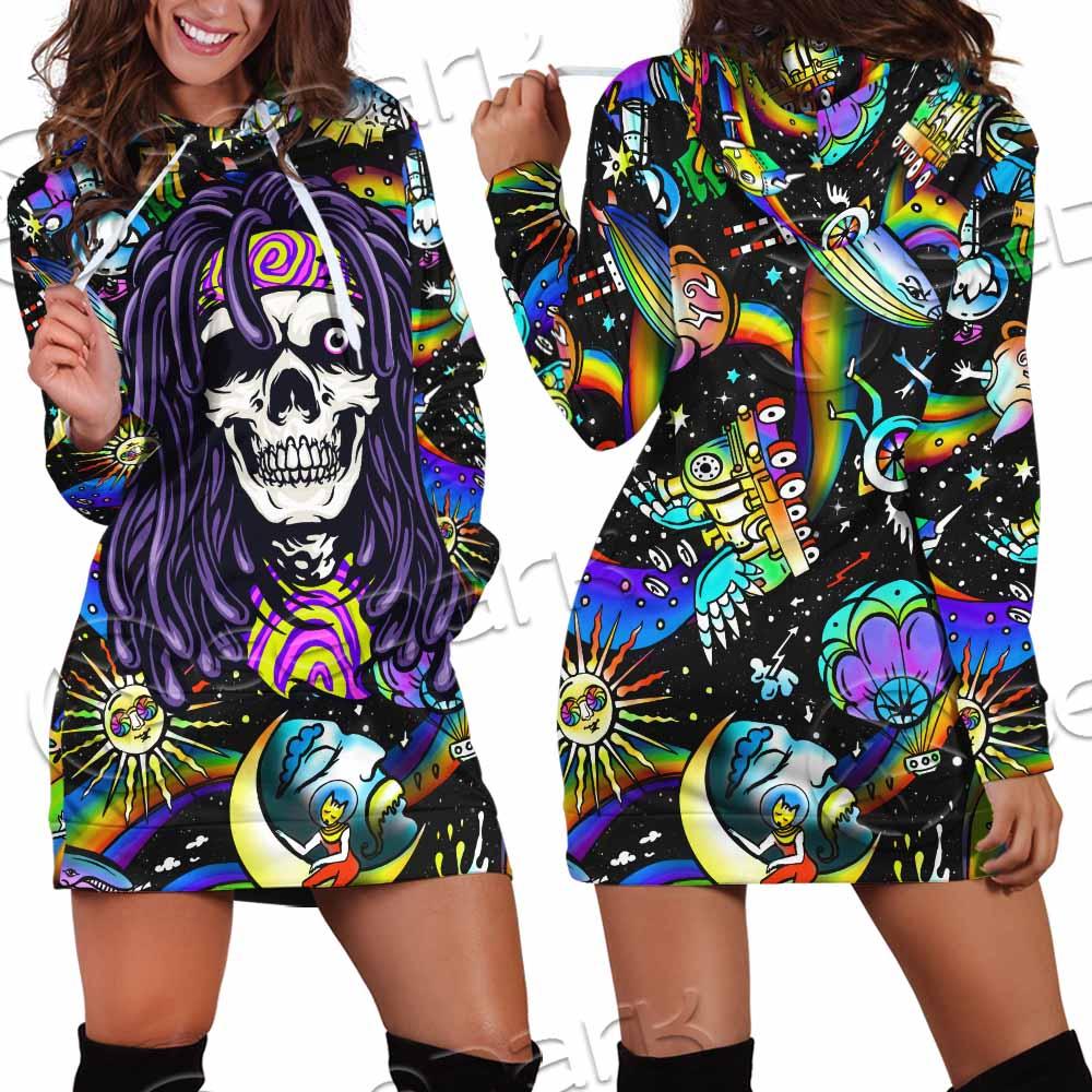 Psychedelic Skull Rasta Character SED-0915 Hoodie Dress
