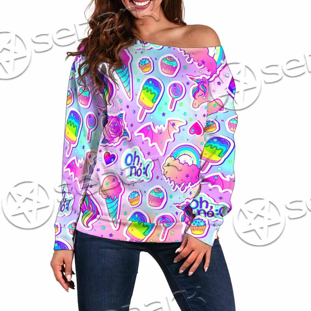Colorful Seamless Pattern SED-0972 Off Shoulder Sweaters