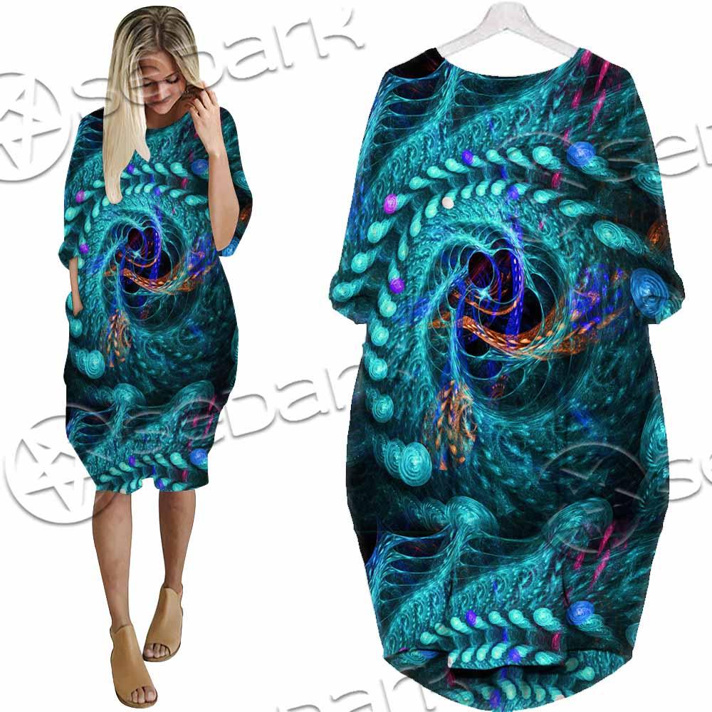 Fractal Colored Abstract Round Curves And Lines SED-1000 Batwing Pocket Dress