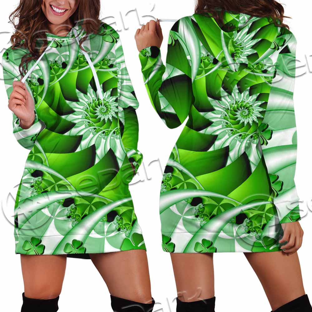 Clover Green Fractal St.Patrick'S Day SED-1022 Hoodie Dress