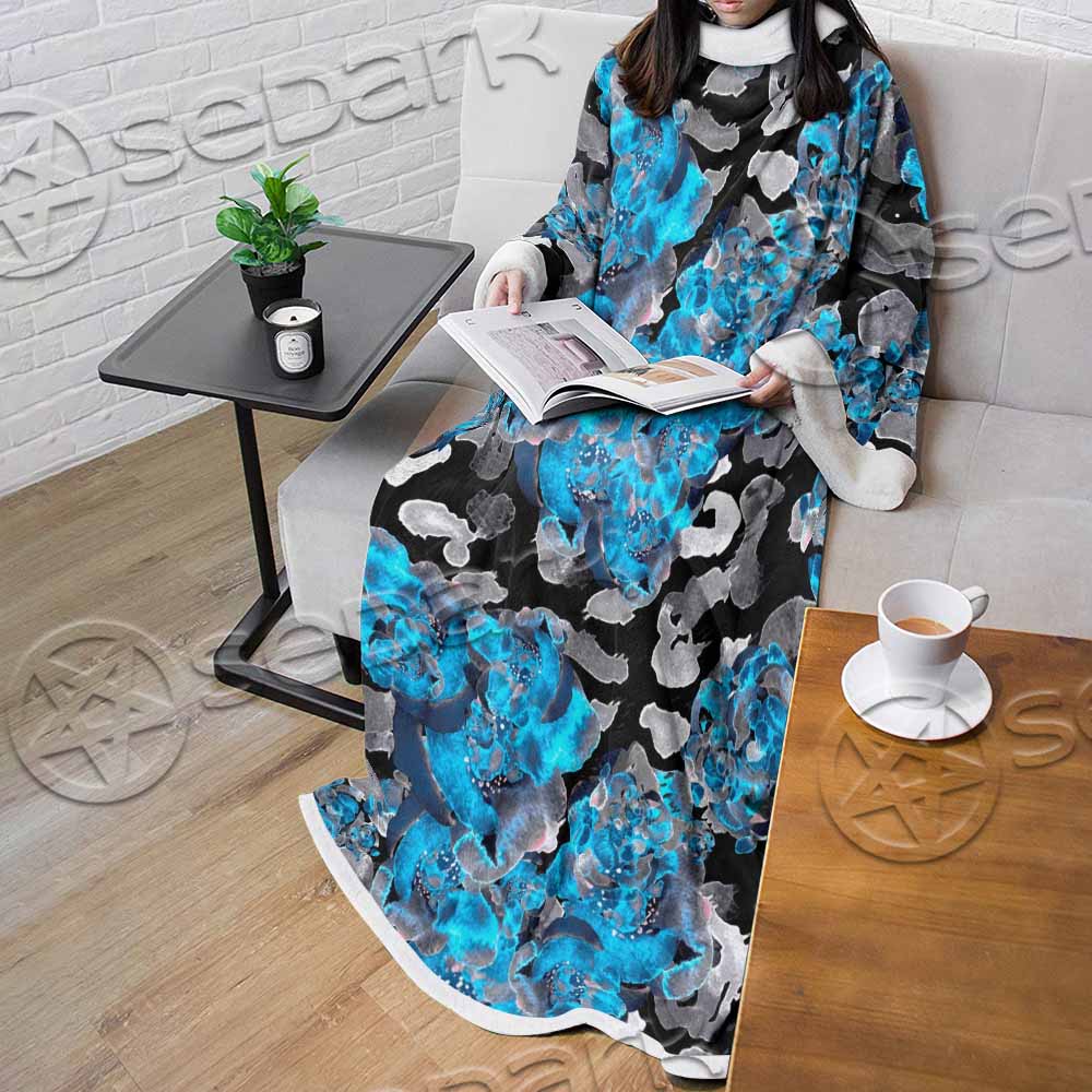 Watercolor Roses, Peony And Leaves Seamless Pattern SED-1119 Sleeved Blanket